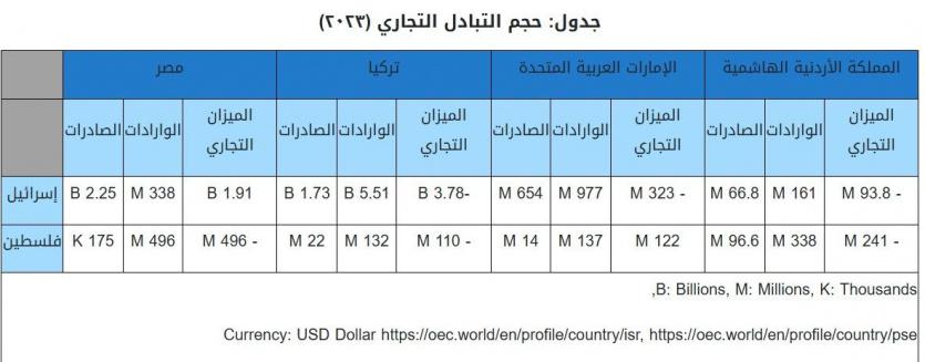 العمل على قلب الطاولة سياسيا والتهديد باستخدام العلاقات مع دول الجوار واستغلال العلاقات التجارية بين فلسطين وعدد من الدول (الأردن، مصر، تركيا، الامارات) كما في الجدول المرفق اعلاه، وكذلك العلاقات التجارية بين تلك الدول وإسرائيل، يُقترح استغلال هذه العلاقات من خلال الدعوة إلى عقد اجتماع يضم وزراء المالية، الاقتصاد والتجارة ومحافظي البنوك المركزية في هذه الدول، بحضور الجانب الفلسطيني، لبحث بند واحد على جدول الأعمال: