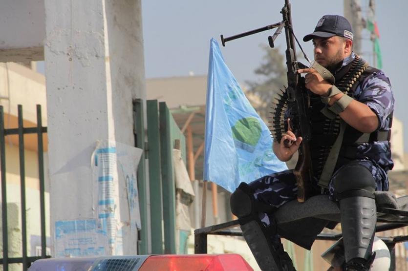 استعراض عسكري لوزارة الداخلية المقالة بغزة في ذكرى الحرب