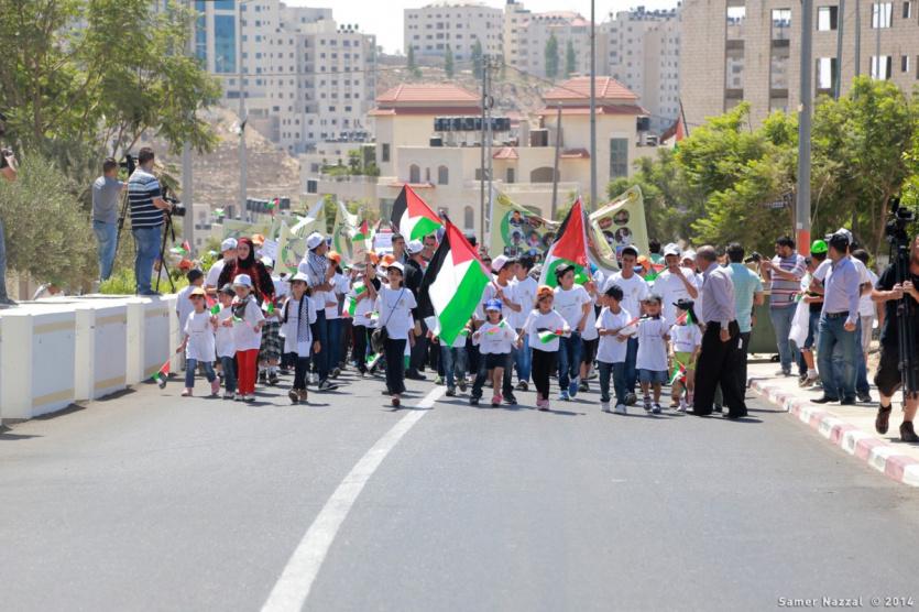 مسيرة أطفال أمام مقر الأمم المتحدة في رام الله ضد جرائم الاحتلال بحق اطفال غزة