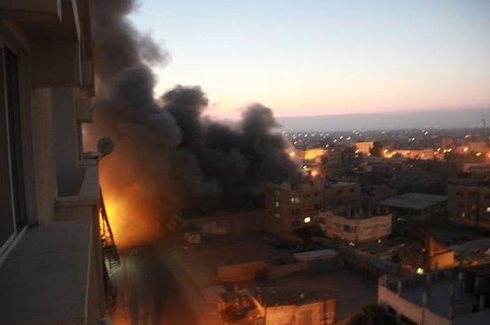 تدمير محلات تجارية مقابل مبنى بلدية رفح