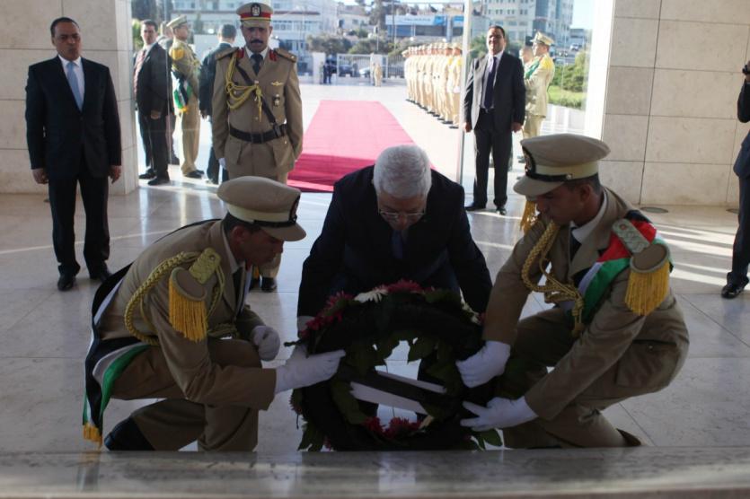 الرئيس محمود عباس يضع اكليلاً من الزهور على ضريح الرئيس الشهيد ياسر عرفات