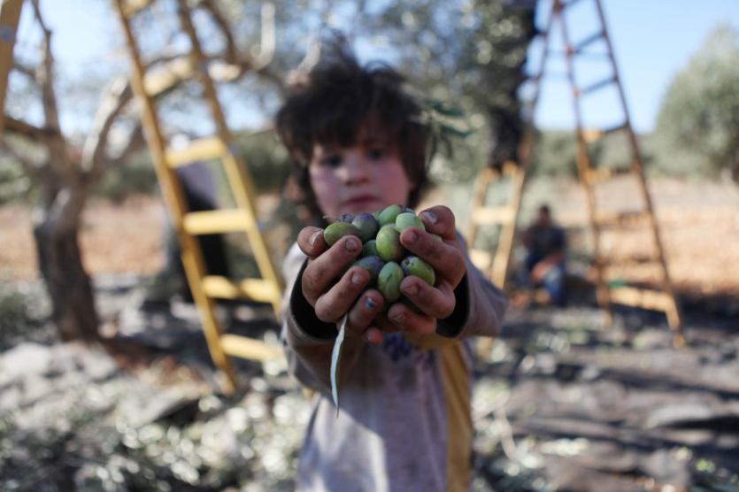 موسم قطف الزيتون في قرية يتما قرب نابلس