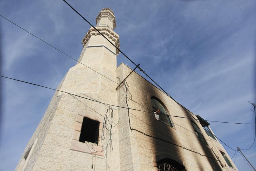 مستوطنون يحرقون مسجداً في قرية المغير شرق رام الله