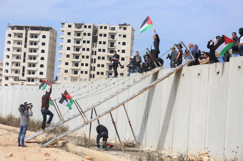 متظاهرون يجتازون جدار الفصل العنصري ويقطعون السياج الفاصل بين رام الله و القدس