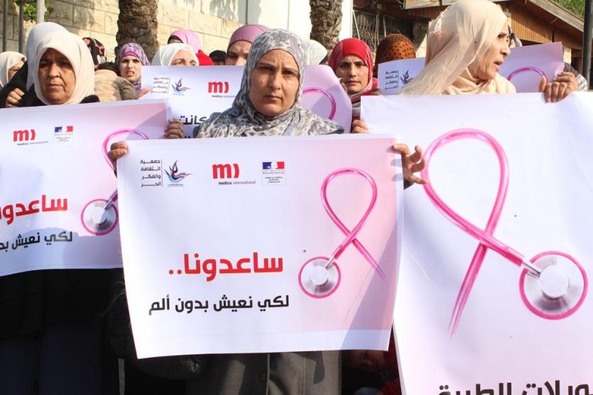 جاء ذلك خلال الوقفة الاحتجاجية التى نظمها مركز صحة المرأة التابع لجمعية الثقافة والفكر الحر امام مجلس الوزراء وسط مدينة غزة ، بمشاركة العشرات من مريضات سرطان الثدى ، ضمن فعاليات الحملة الوطنية لمناهضة العنف ضد المرأة ،ومشروع الكشف المبكر عن سرطان الثدى الممول من مؤسسة ميدكو انترناشونال وبمساهمة من القنصلية الفرنسية وصندوق الامم المتحدة للسكان .