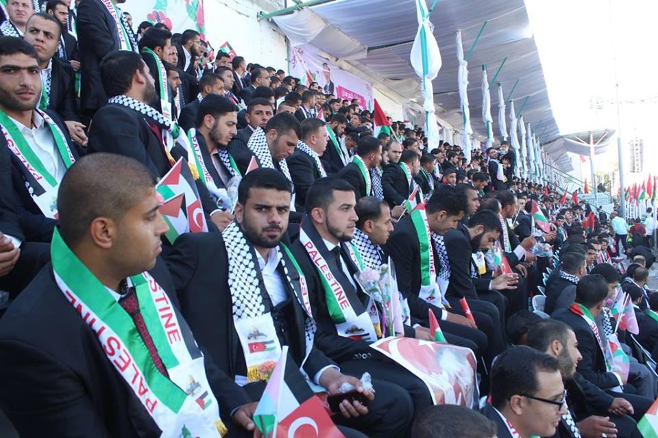 زف 4000 عريس وعروس عصر اليوم الأحد، في حفل زفافي جماعي في مدينة غزة بتمويل من وزارة الشئون الدينية التركية ووكالة التنسيق والتعاون التركي "تيكا" التركية الحكومية، حيث انطلقت زفة العرسان من أرض السرايا باتجاه ملعب اليرموك، إضافة إلى مواكب لزفاف عرسان منطقتي الوسطى والجنوب في قطاع غزة، ورفعت اعلام فلسطين وتركيا وصور للرئيس التركي رجب طيب أردوغان، بحضور وزراء حكومة التوافق في غزة، وممثلين عن الفصائل بغزة، وتخلل الحفل فقرات فنية وتراثية.