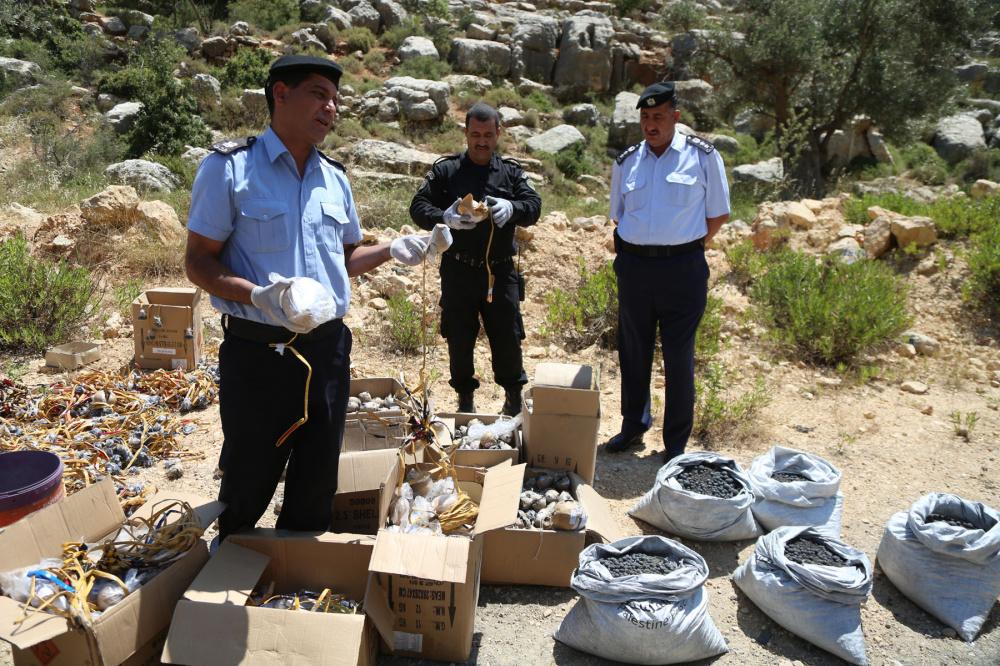 هندسة المتفجرات في الشرطة الفلسطينية تتلف كمية من الألعاب النارية