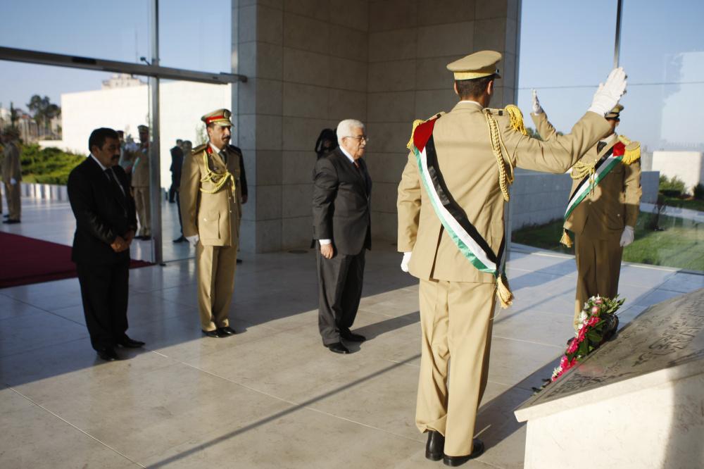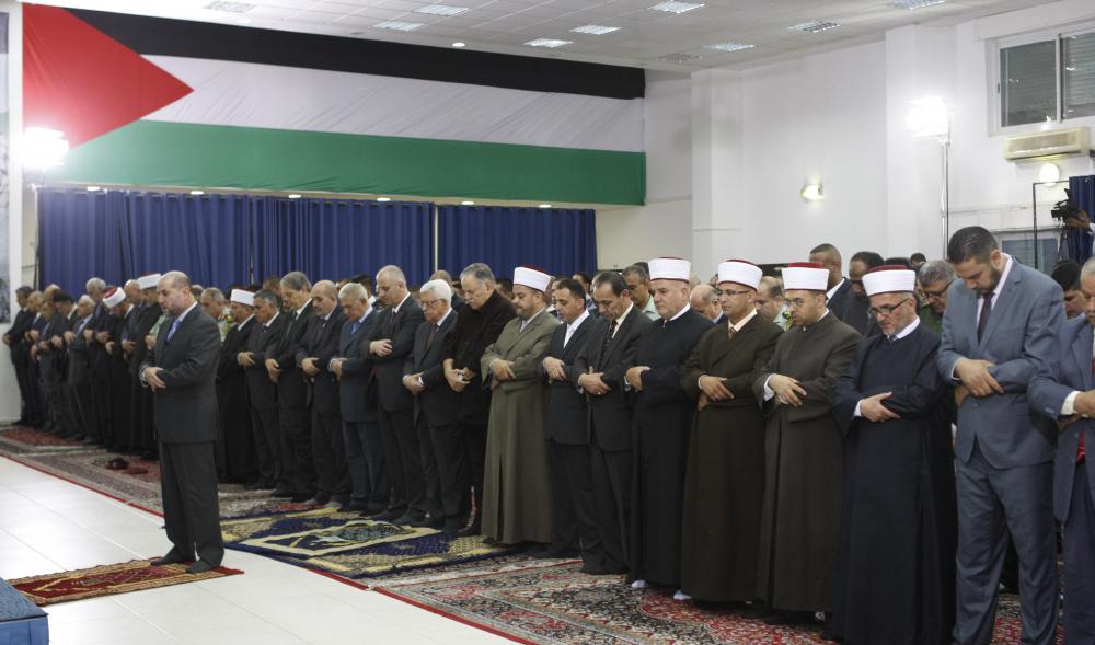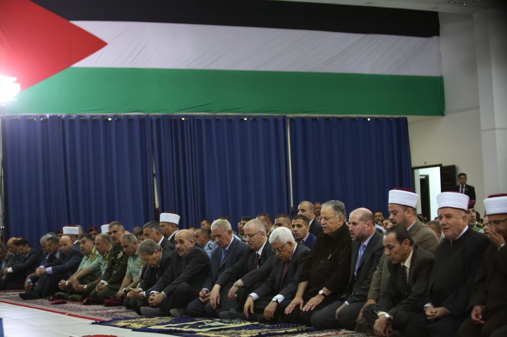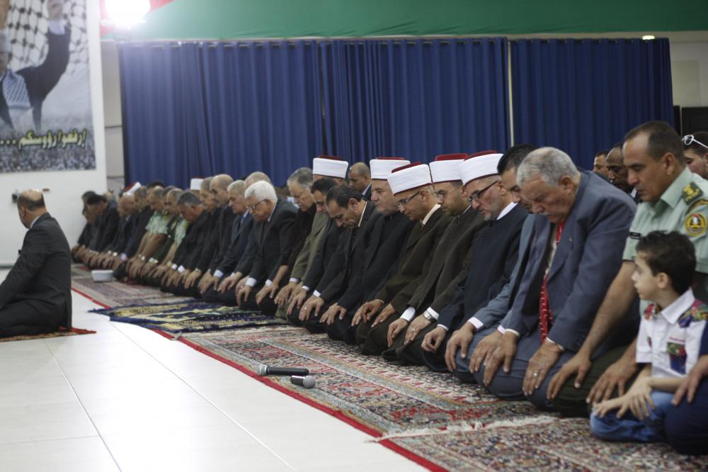 الرئيس يؤدي صلاة العيد ويضع الزهور على قبر الشهيد عرفات