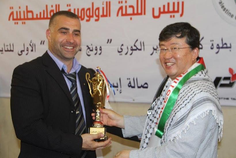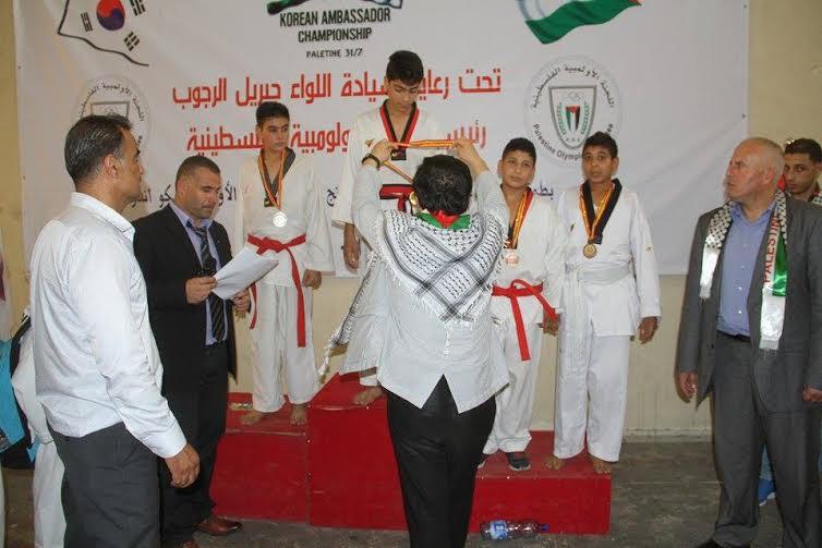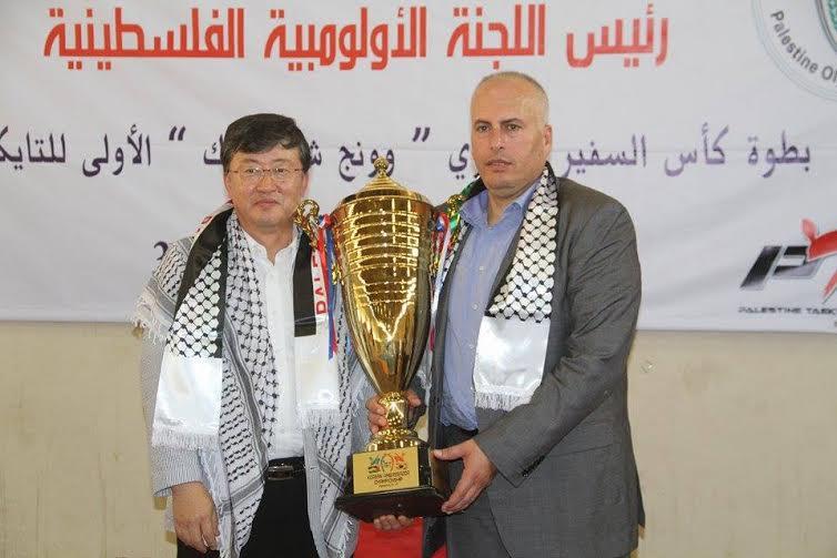 انهي الاتحاد الفلسطيني للتايكواندو بطولة كأس السفير الكوري الأولى للتايكواندو لفئات الأشبال والناشئين والرجال والتي أقيمت في صالة ابسا في مجمع بلدية رام الله الرياضي تحت رعاية رئيس اللجنة الاولمبية اللواء جبريل رجوب وبحضور السفير الكوري وونج شول باك وبمشاركة عدد غفير من الشخصيات الاعتبارية والأهالي وضيوف الاتحاد حيث شارك في هذه البطولة الأندية التالية ( نادي تراي فتنس ، و عيبال ، وفرسان فلسطين ، وعالم الرياضة ، وحوار ، والاتحاد،كشاف الكاثوليك العرب القدس، مركز شباب عسكر، اتحاد الشرطة الرياضي ، مركز روكي ، مركز رقم واحد نابلس من مختلف المحافظات الفلسطينية كما شارك لاعبين من المنتخب الوطني باسم الاتحاد الفلسطيني للتايكواندو.