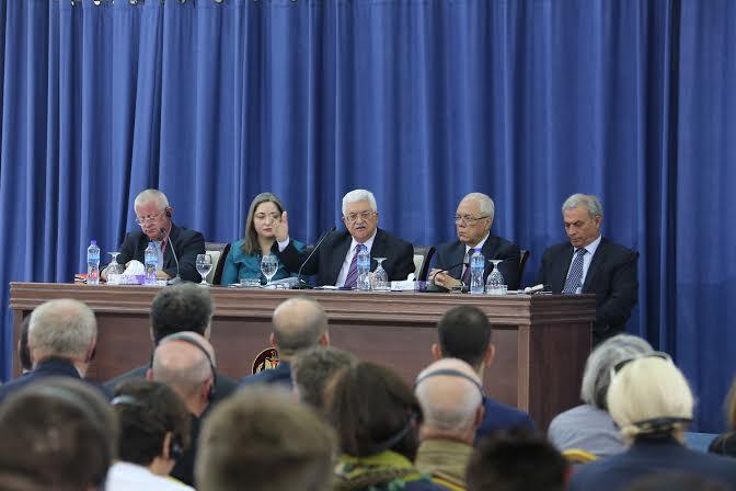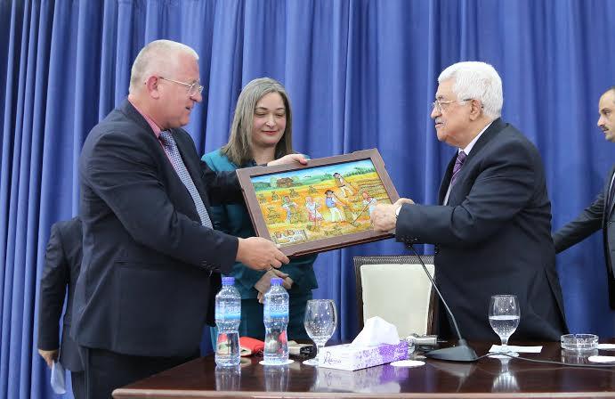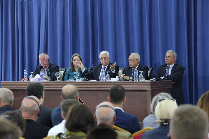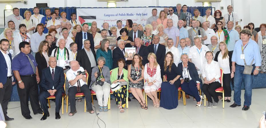 الرئيس محمود عباس اثناء مؤتمر الاعلاميين البولنديين