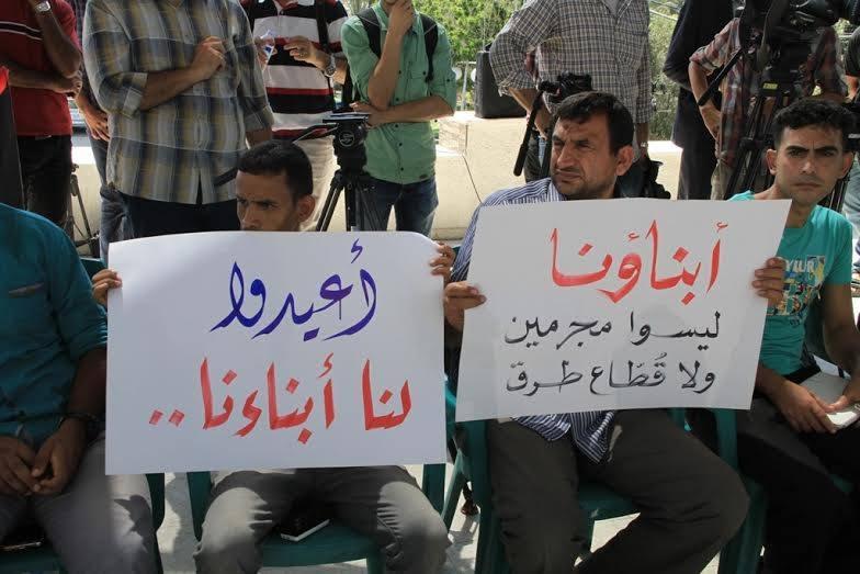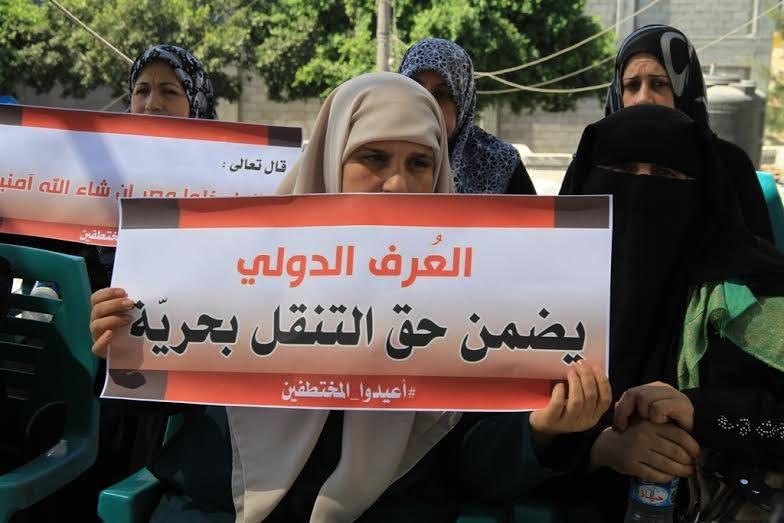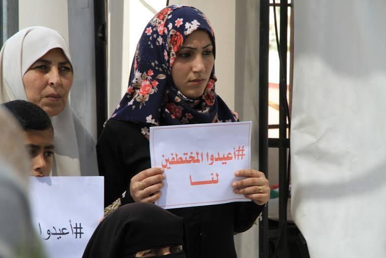صور.. وقفة أهالي المختطفين في مقر تشريعي غزة للمطالبة بالافراج عنهم