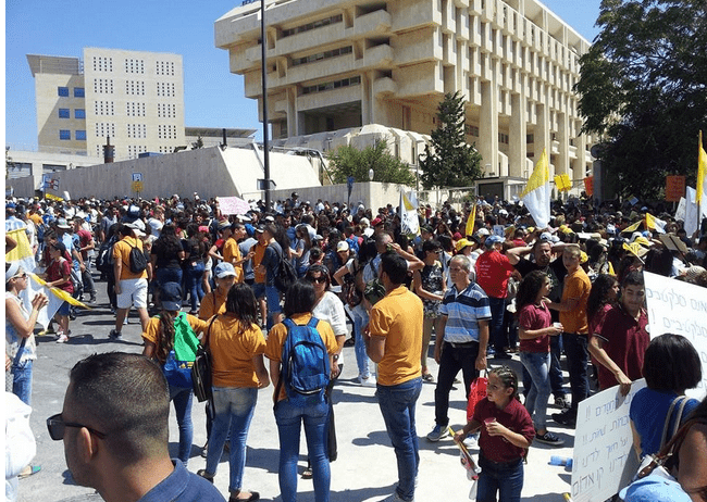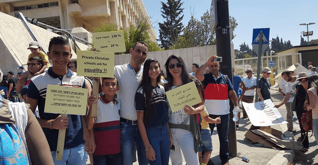المدارس الاهليه داخل 48 تتظاهر امام مكتب نتنياهو في القدس الغربية