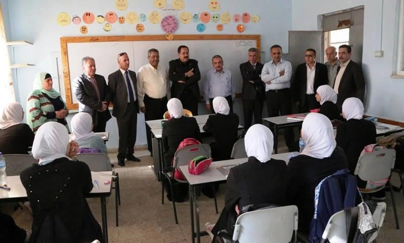صبري صيدم وزير التربيه والتعليم واسرة الوزارة والمديريه يزور ثانوية ترمسعيا الذي تعرض فيها طالب للضرب المبرح