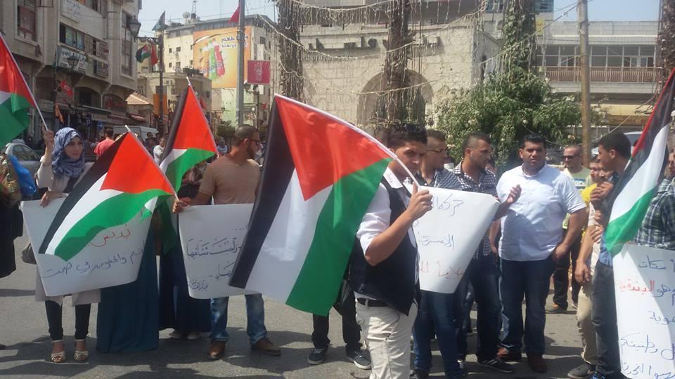 تظاهرة منددة بالاعتداءات التي يتعرض لها المسجد الأقصى من قبل الاحتلال وسط مدينة رام الله اليوم.