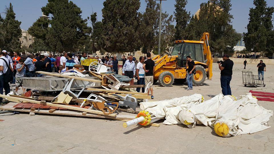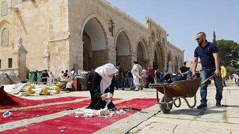 المقدسيون ينظفون اوساخ المحتل ودماره وتخريبه في الاقصى
