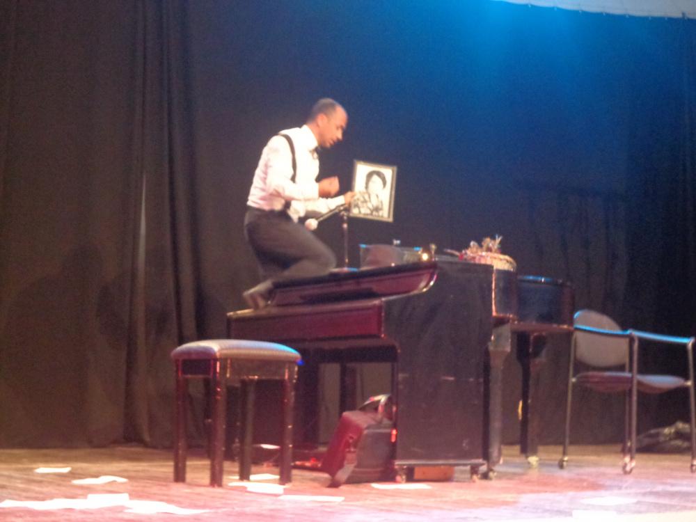 والغريب في هذه المسرحية ان صاحبها هو الممثل الوحيد فيها.