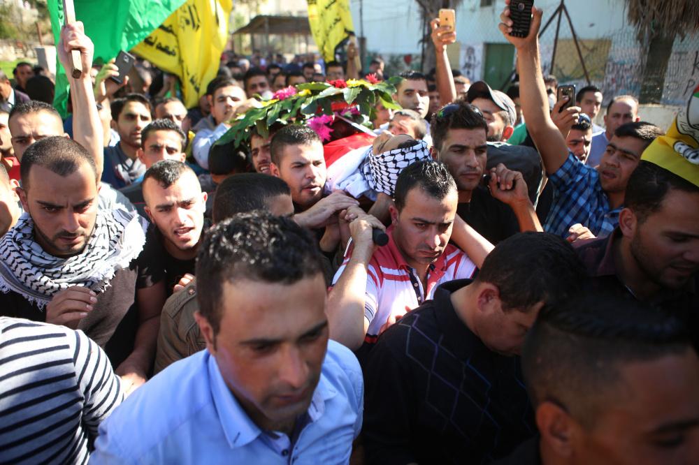 تشييع جثمان الشهيد لافي عوض في قرية بدرس
