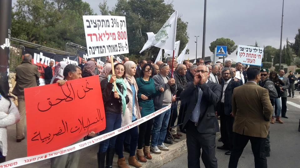 مظاهرة امام وزارة المالية الاسرائيليه والكنيست احتجاجا على تغييب احتياجات العرب من الميزانية..