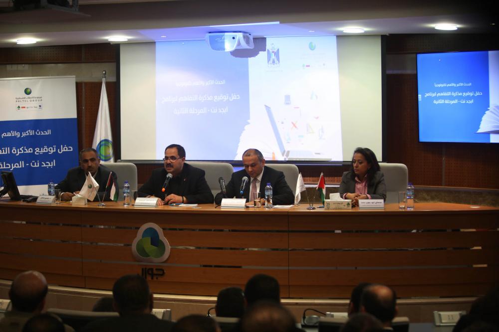 حفل توقيع مذكرة التفاهم لبرنامج"ابجد نت"المرحلة الثانية والخاص بتزويد المدارس الفلسطينية بخدمات الانترنت