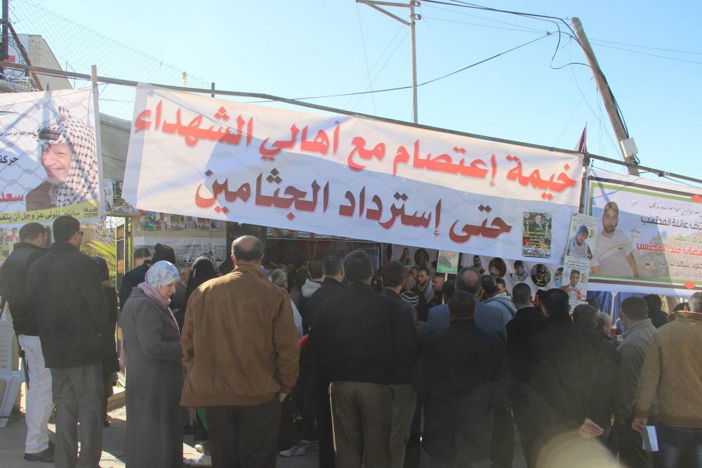 الخليل: خيمة اعتصام مع أهالي الشهداء المحتجزة جثامينهم