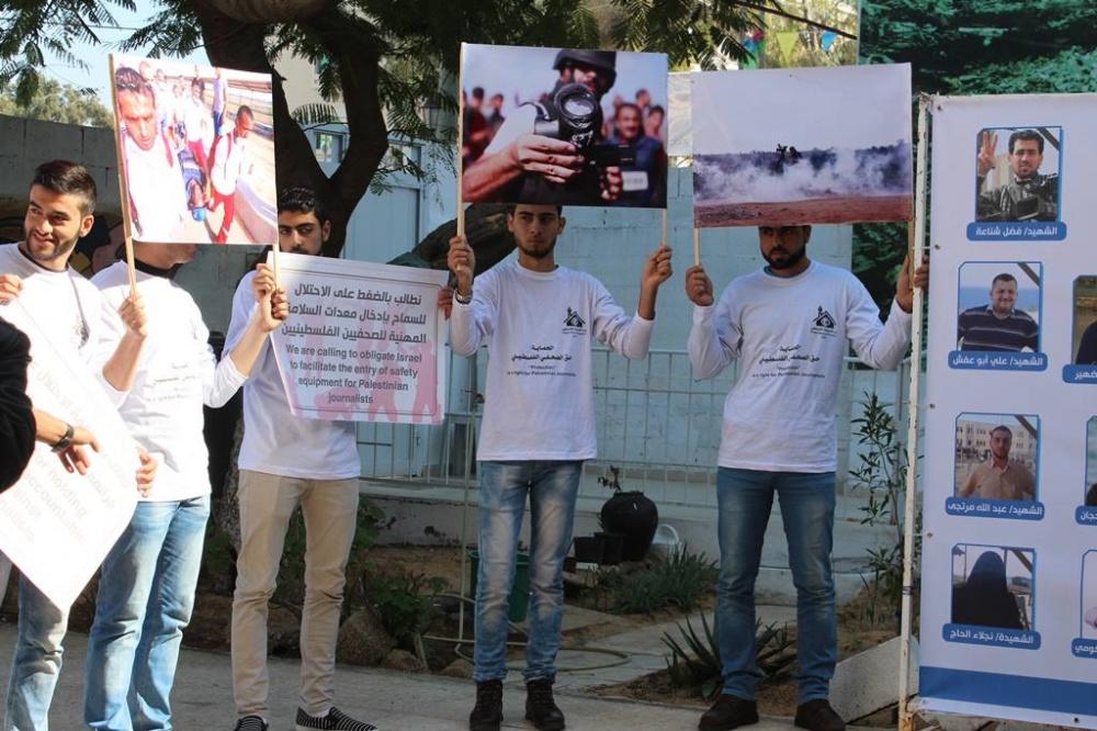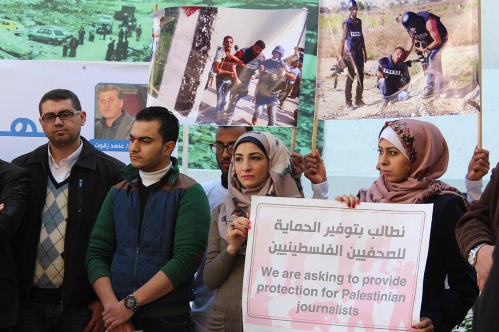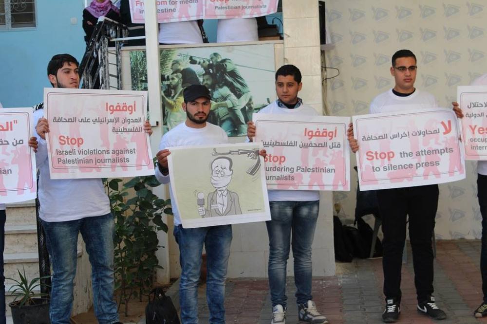 وشارك في الوقفة لفيف من الصحفيين العاملين في مختلف وسائل الاعلام المحلية والدولية، اضافة الى خريجي كليات الاعلام في الجامعات الفلسطينية ونشطاء الاعلام الجديد، وشخصيات اعتبارية من مؤسسات حقوق الانسان والمؤسسات الدولية، ورفع المشاركين لافتات تطالب في حقوق الصحفي وتوفير الحماية له.