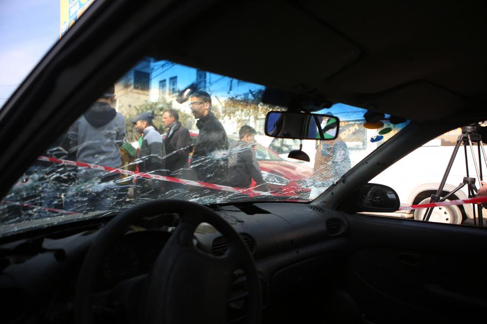 صور للسيارتين اللتين كان يستقلهما الشهيدان احمد جحاجحة وحكمت حمدان في مخيم قلنديا قبل اطلاق الرصاص عليهما ما ادى الى استشهادهما واصابة شاب ثالث كان مع احدهما...تظهر الصور تعرض احدى السيارتين لاكثر من 20 رصاصة في الواجهة الامامية.