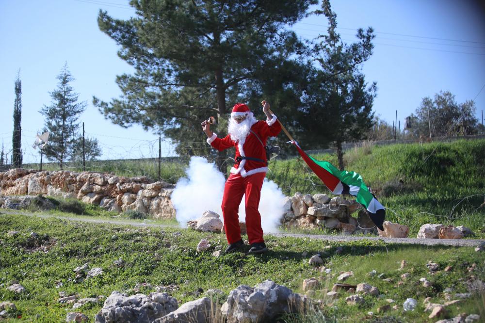 الاحتلال يقمع مسيرة بابا نويل في بلعين