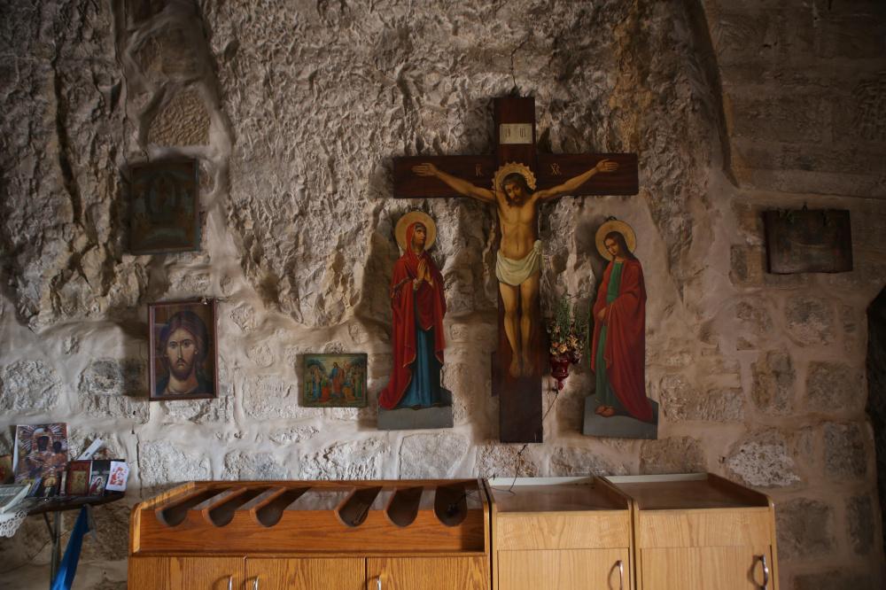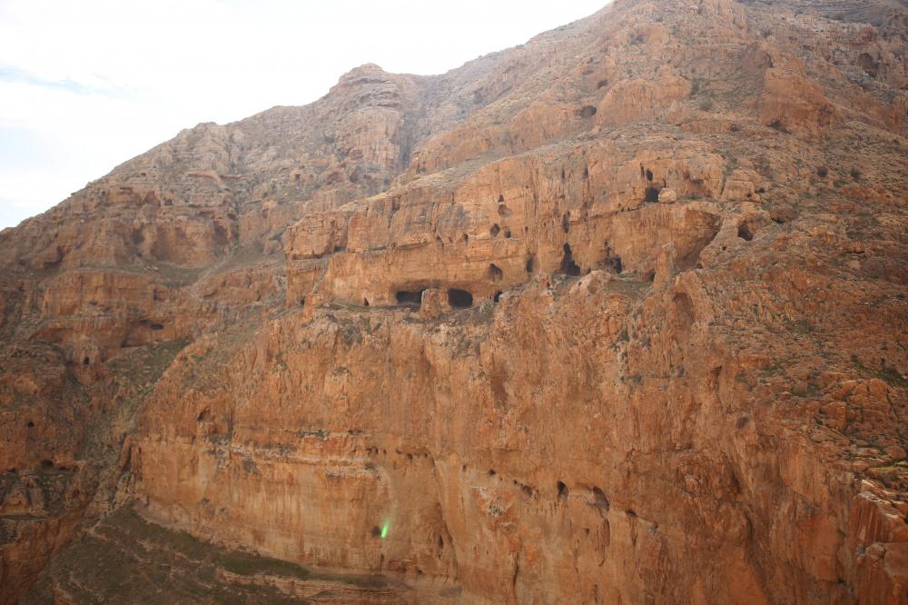 على المنحدر الشرقي للجبل توجد هنالك العديد من الكهوف يبلغ عددها تقريباً 30-40 كهف وقد سكنها النساك والرهبان في الأيام الأولى للمسيحية.