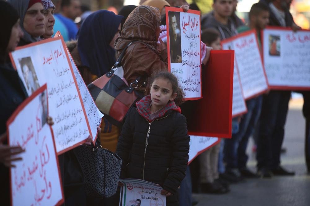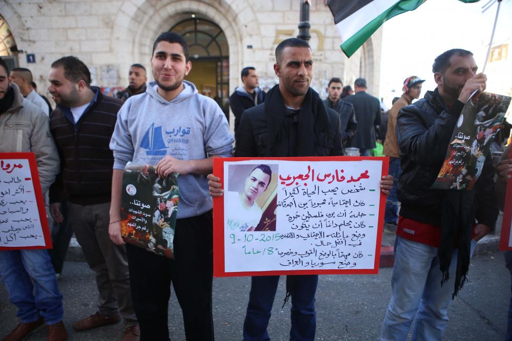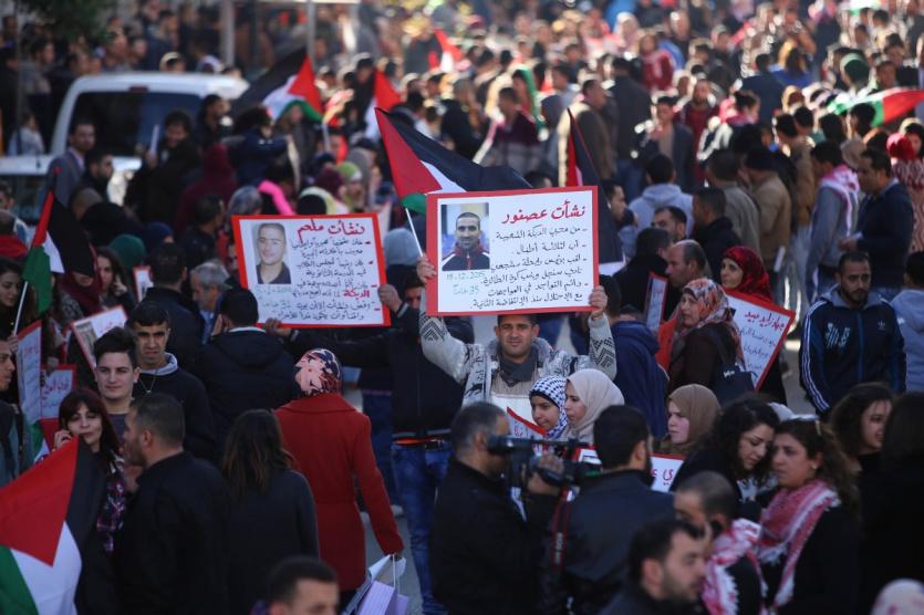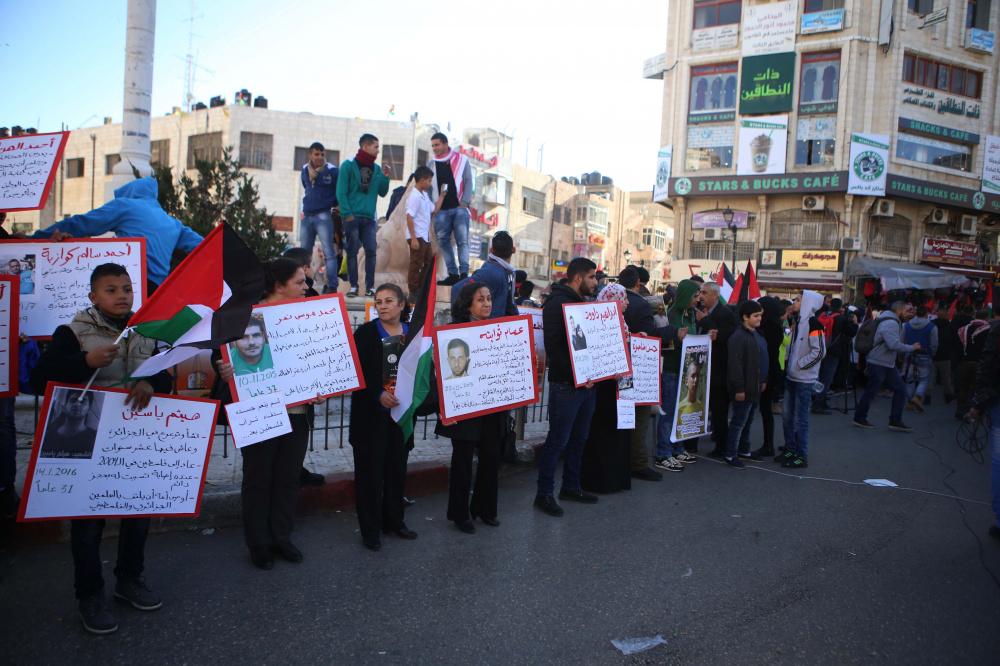 سلسلة بشرية في رام الله بعنوان لكل شهيد حياة