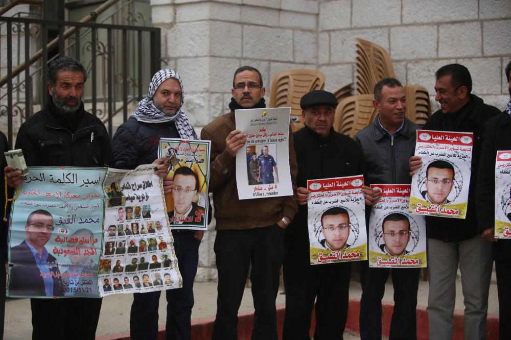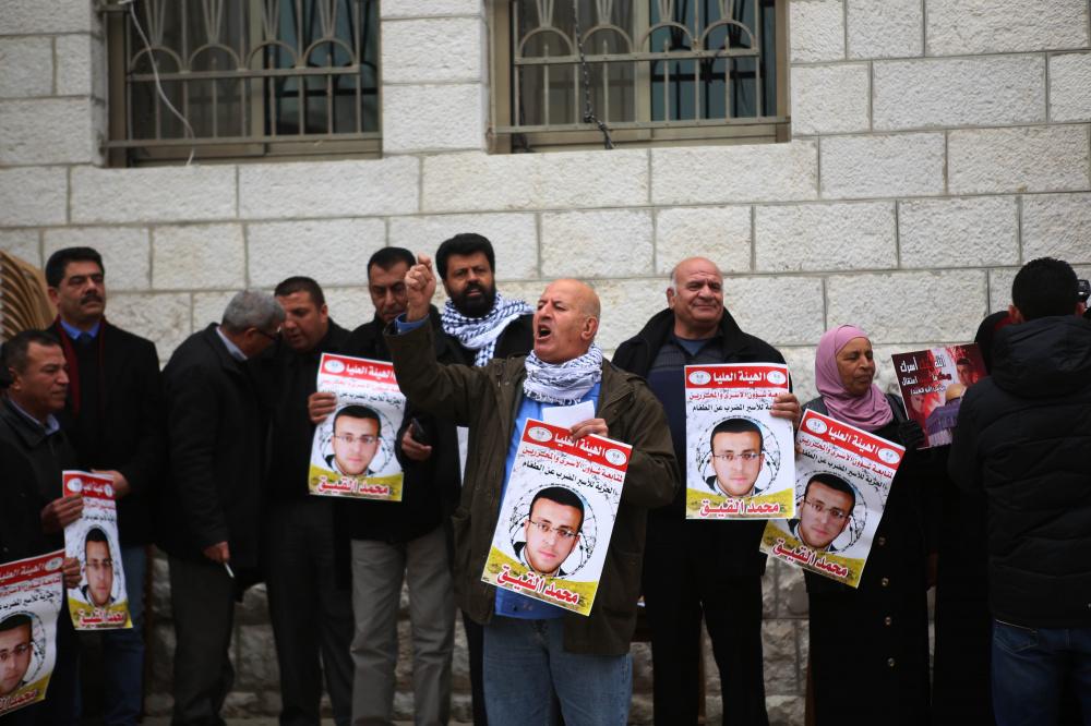 إعتصام تضامني مع الأسير الصحفي محمد القيق أمام مقر الصليب الأحمر في رام الله