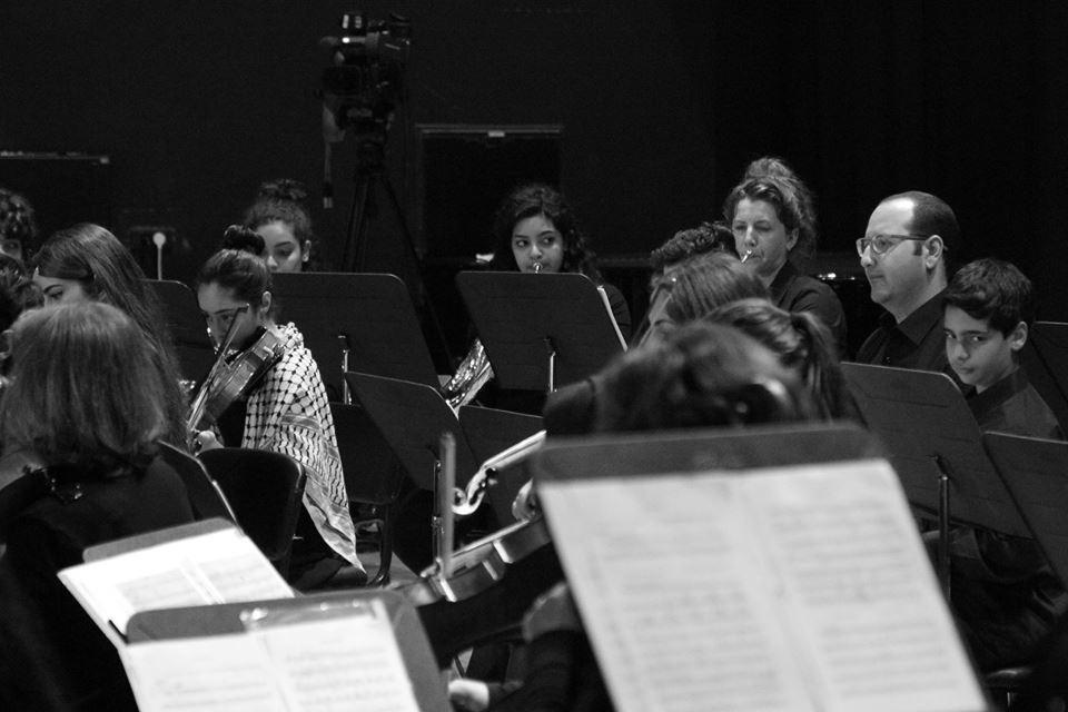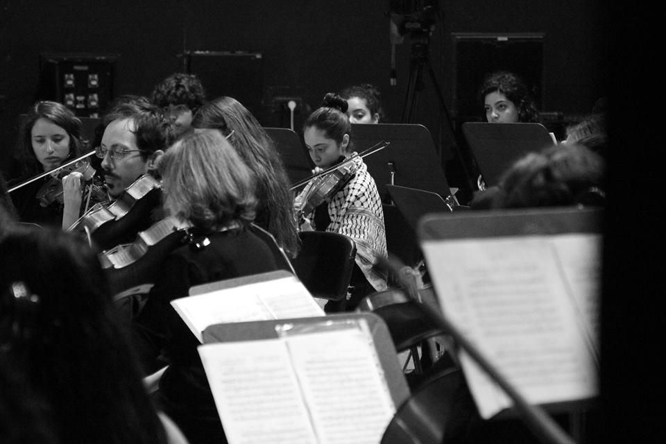 عرض الأوركسترا الوطنية الفلسطينية وأوركسترا المعهد الوطني للموسيقى في جامعة النجاح