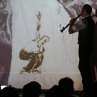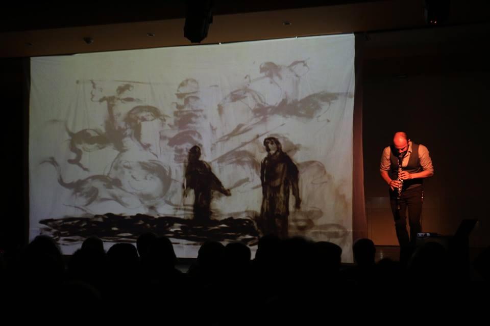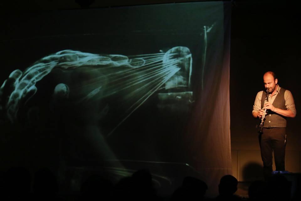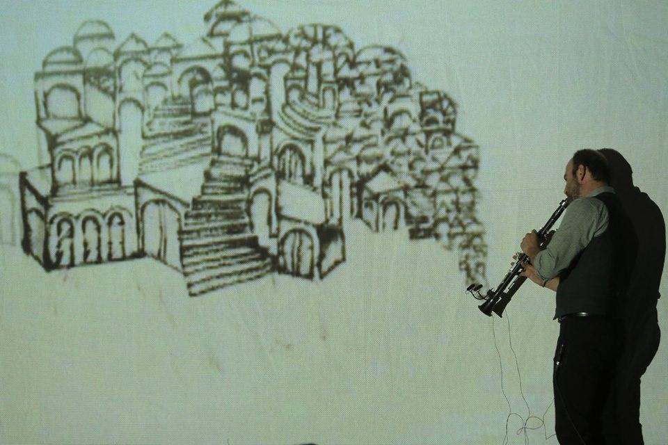 وقدم العرض الموسيقى المرئي ومدته 60 دقيقة الفنانان السوريان كنان العظمة عازف الكلارنيت، وكيفورك مراد الرسم التجريدي.