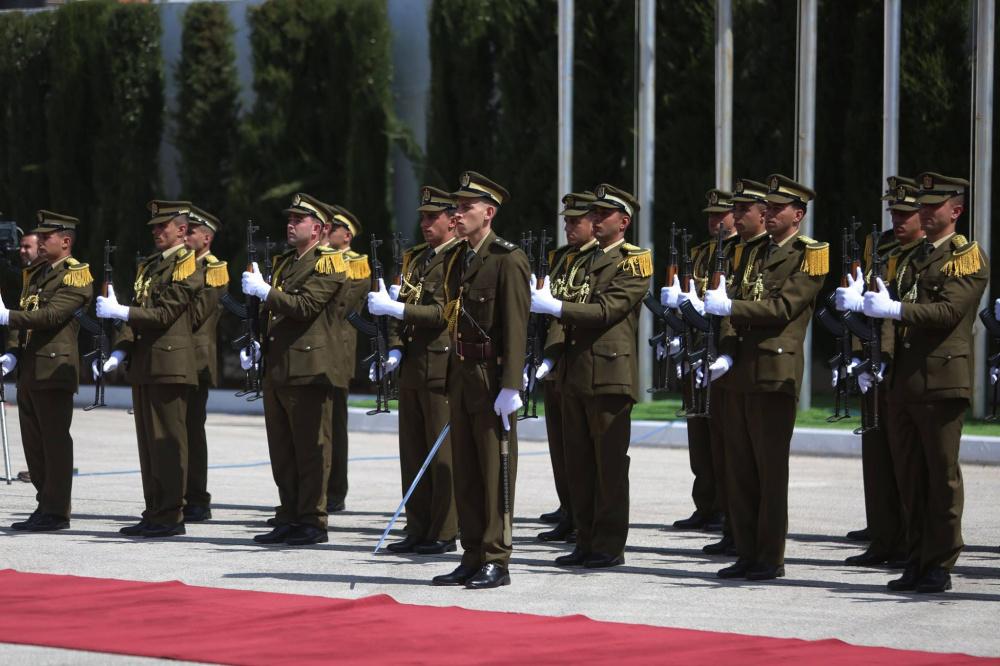 واستعرض الرئيسان حرس الشرف الذي اصطف لتحيتهما، فيما عزف السلامان الوطني الفلسطيني والروماني.