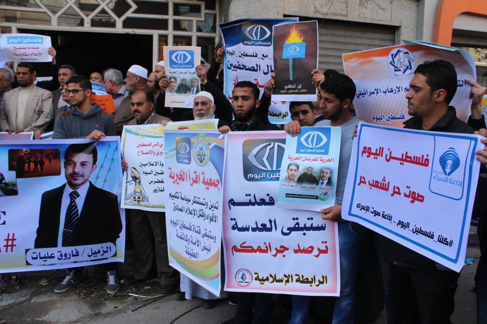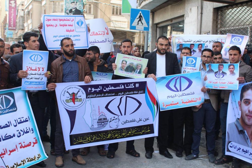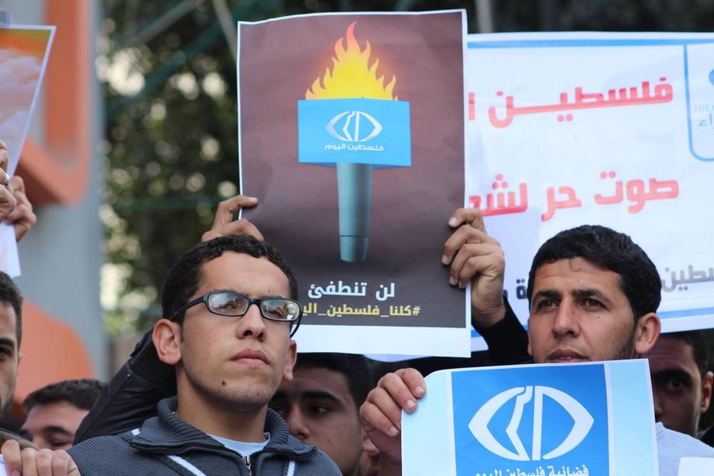 اعتصام تضامني كبير مع قناة "فلسطين اليوم" وسط غزة