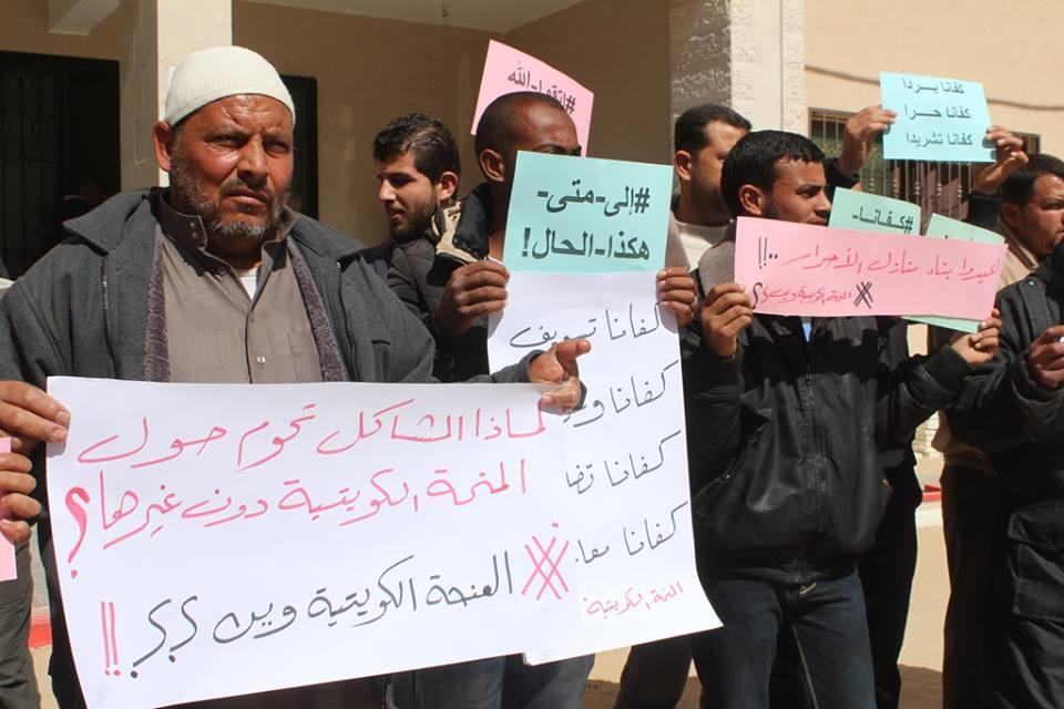 اعتصام أصحاب البيوت المدمرة بغزة للمطالبة بصرف المنحة الكويتية