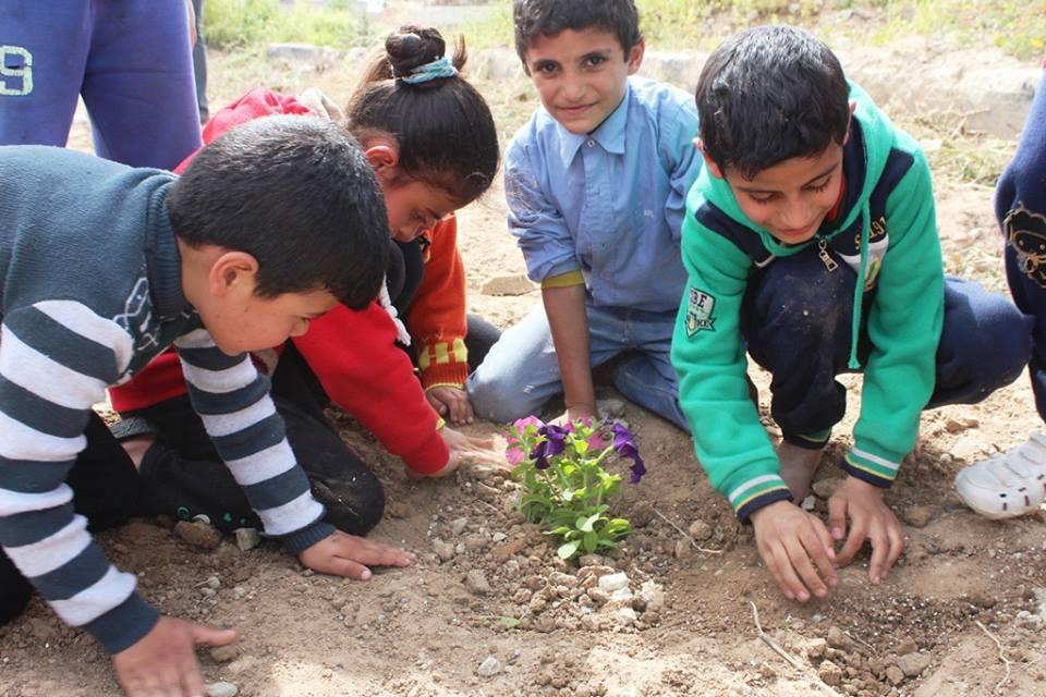 اطفال الشجاعية يزرعون الورود بين بيوتهم المُدمرة