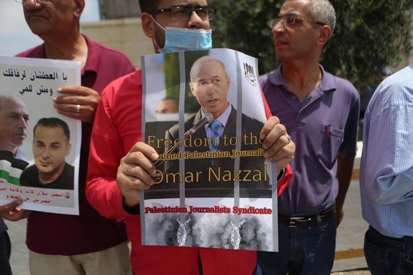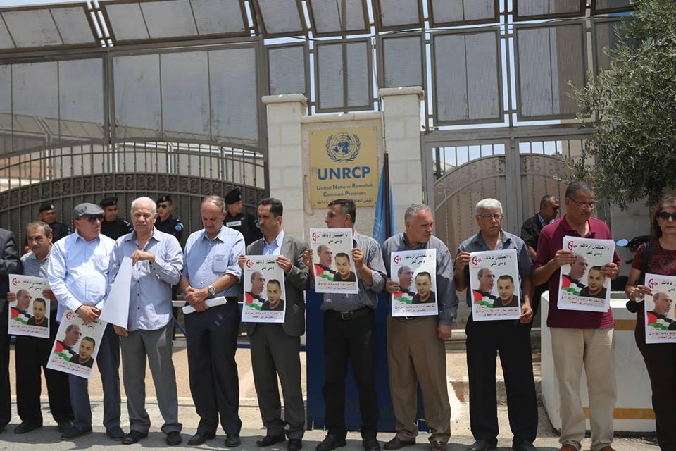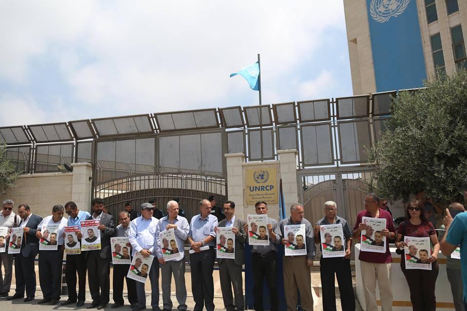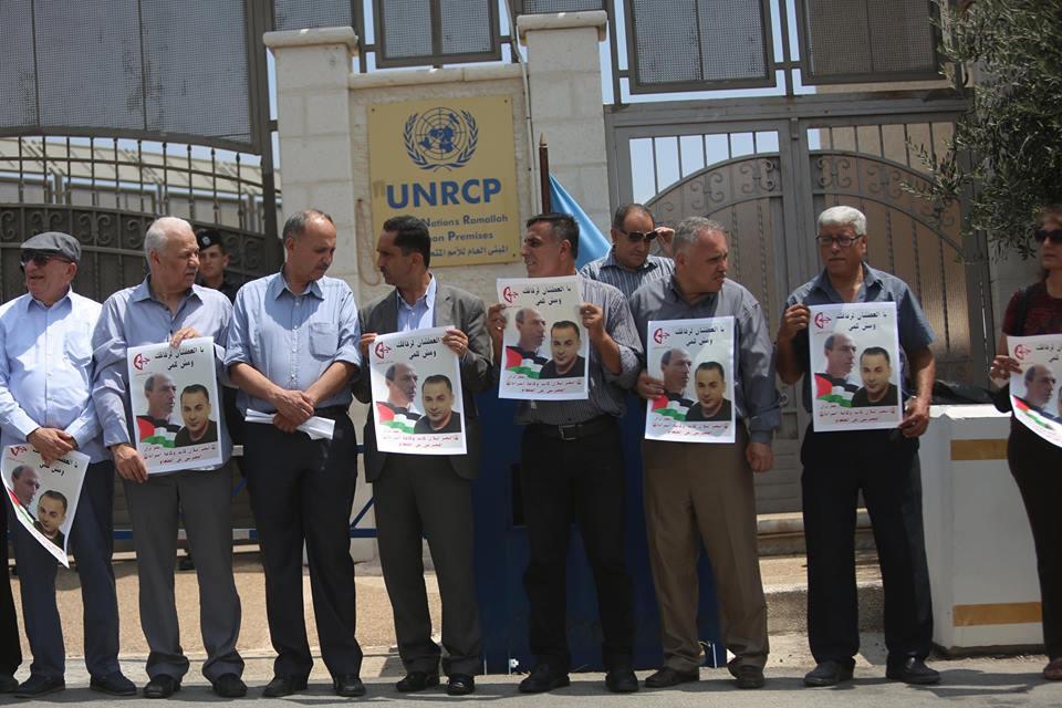 وقفة تضامنية مع الاسير الصحفي عمر نزال وبلال كايد امام مقر الامم المتحدة في رام الله