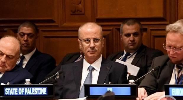 ودعا رئيس الوزراء المجتمع الدولي أجمع للاعتراف بدولة فلسطين، مشيرا إلى أن هذا هو الخيار العملي والافضل والوحيد لحماية حل الدولتين.
