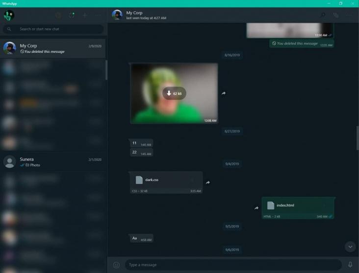 ومع أن موقع "XDA-Developer" نشر لقطة واحدة للوضع الداكن على سطح المكتب، إلا أن موقع "WABetaInfo" – المتخصص في رصد المزايا التجريبية في خدمة واتساب خاصةً – قد نشر العديد من لقطات الشاشة التي تكشف عن المزيد من تفاصيل الميزة.
