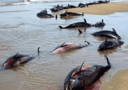 الأمواج تقذف مئات الدلافين إلى شاطئ المحيط الأطلسي