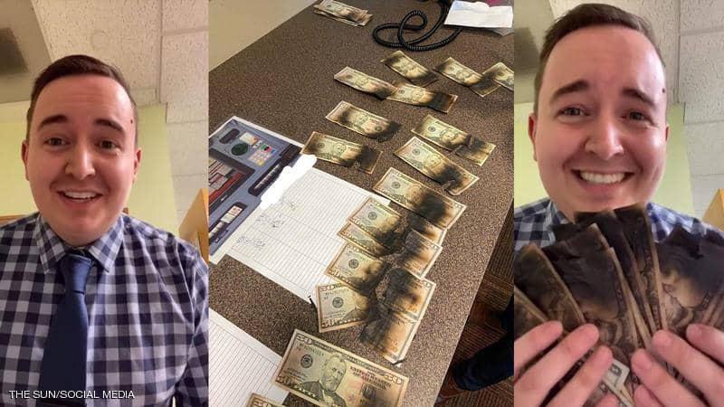 ونشر موظف البنك لقطات فيديو، وهو يضحك مشيرا إلى أن أحد العملاء حاول استبدال الأموال التي اسودت واحترقت أجزاء منها بعد محاولته تعقيمها من فيروس كورونا بواسطة المايكروويف.