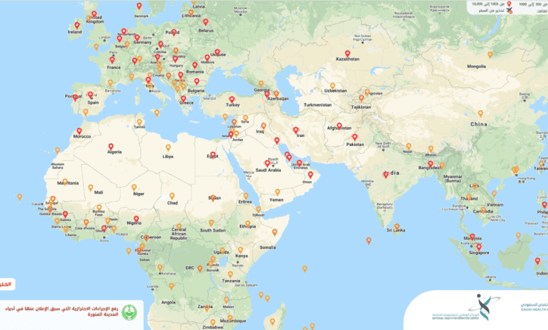 كما أعلن المركز الوطني للمعلومات الصحية عن إطلاق “خريطة كورونا“، وهي تطبيق متوفر للهواتف الذكية لمتابعة آخر مستجدات كورونا، بالإضافة لمعدلات وبيانات انتشار الفيروس وآخر التحديثات حول العالم، إذ يوفر التطبيق:
