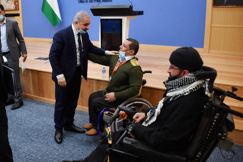 أوعز رئيس الوزراء محمد اشتية لجهات الاختصاص لتعديل اللوائح والأنظمة التي تنظم عمل التأمين الصحي الحكومي للأشخاص ذوي الإعاقة، بما يشمل الإعفاء من المساهمة المالية (5%)، وتغطية الأجهزة والأدوات التعويضية، وبعض المطالب الأخرى.