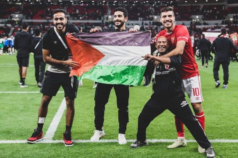 وكان نجم الأهلي حسين الشحات، قد ارتدى علم فلسطين أثناء تتويجه مع الفريق بكأس السوبر الأفريقي الثامن في تاريخه، بينما كان العلم حاضرًا على المدرجات طوال مجريات اللقاء لدى جمهور الفريقين.