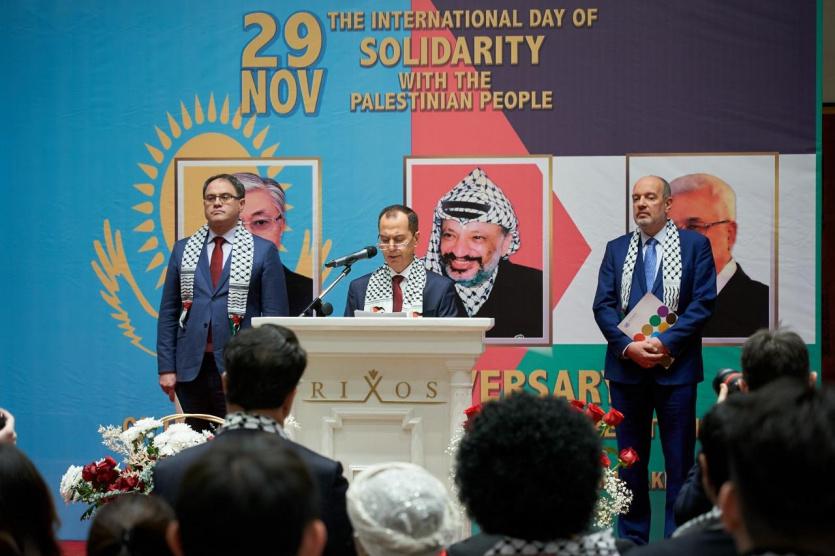 أقامت سفارة دولة فلسطين في جمهورية كازاخستان في العاصمة "أستانا"، أمس الثلاثاء، 29 نوفمبر2022، إحتفالاً مركزياً بمناسبة اليوم العالمي للتضامن مع الشعب الفلسطيني و الذكرى السنوية الـ 18 لرحيل القائد المؤسس الشهيد الخالد ياسر عرفات والذكرى الـ 30 لإقامة العلاقات الدبلوماسية بين فلسطين وجمهورية كازاخستان.