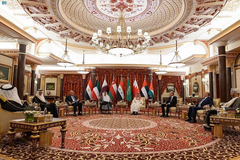 وشارك بالاجتماع الذي عقد في مدينة جدة، وزراء خارجية: دول مجلس التعاون لدول الخليج العربية، والأردن، ومصر، والعراق.