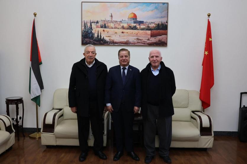 استقبل سفير دولة فلسطين لدى جمهورية الصين الشعبية، معالي د. جواد عواد وطاقم سفارة دولة فلسطين، يوم الخميس الموافق 20 /نوفمبر/2025، محمود العالول "أبو جهاد"، نائب رئيس حركة "فتح" ورئيس الوفد الفلسطيني والعربي المشارك في الدورة الحادية عشرة لمؤتمر الحوار بين الحضارتين الصينية والعربية، وعزام الأحمد عضو اللجنة المركزية لحركة "فتح" وأمين سر اللجنة التنفيذية لمنظمة التحرير الفلسطينية، وضم الوفد كلاً من عبد الفتاح دولة، وماهر النمورة، وذلك في مقر السفارة في العاصمة الصينية بكين.