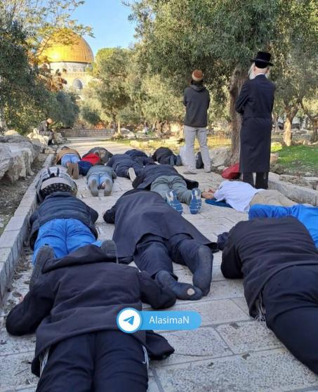 وأفادت مصادر محلية، بأن عشرات المستعمرين، اقتحموا المسجد الأقصى، وأدوا طقوسا تلمودية استفزازية، بحماية من قوات الاحتلال، كما قاموا بتأدية ما يُعرف بـ"السجود الملحمي" في باحاته، في اليوم الثامن والأخير بما يعرف بعيد "الأنوار اليهودي".