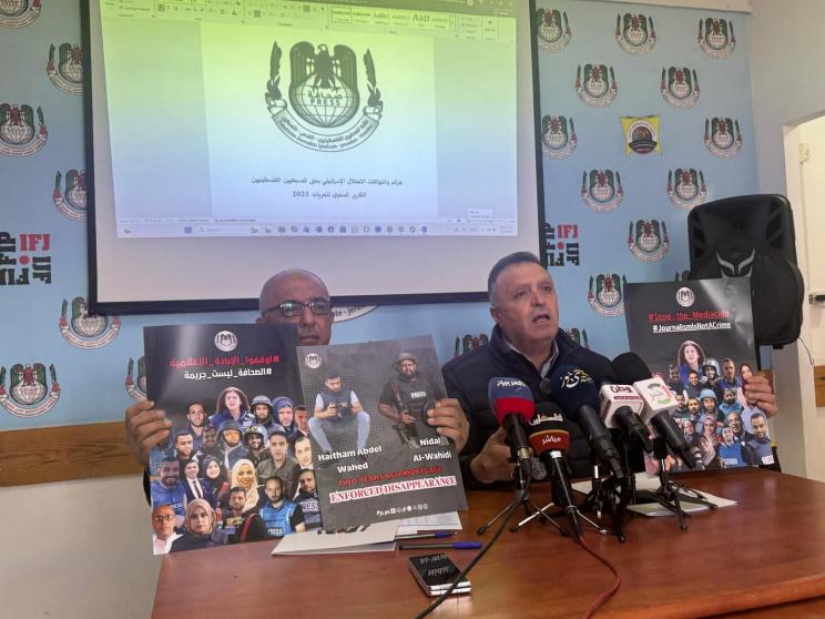 وسلّط اللحام الضوء على استمرار جريمة الإخفاء القسري بحق عدد من الصحفيين الذين انقطع الاتصال بهم منذ بداية العدوان على قطاع غزة، محمّلًا سلطات الاحتلال المسؤولية الكاملة عن مصيرهم، ومطالبًا بالكشف الفوري عن أماكن وجودهم.