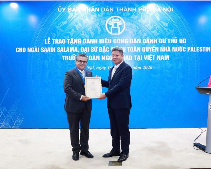 وفي كلمته، أعرب السفير الطميزي عن اعتزازه بهذا التكريم، مؤكدا أن منحه مواطنة الشرف من قبل العاصمة هانوي يجسد رسالة تقدير متبادل بين فلسطين وفيتنام، ويعكس المكانة التي تحظى بها الدبلوماسية الفلسطينية على الساحة الدولية، والدور الثقافي والإنساني الذي تضطلع به، في ترسيخ قيم الصداقة والتعاون والتفاهم بين الشعوب.